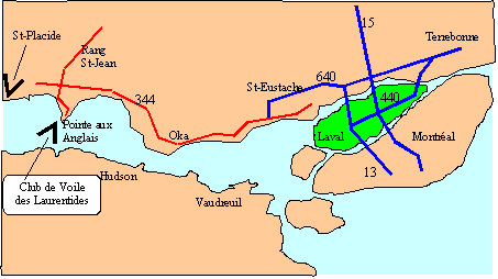Dépassez de 6 km l'intersection de la traverse de Oka, en direction de St-Placide et Grenville;