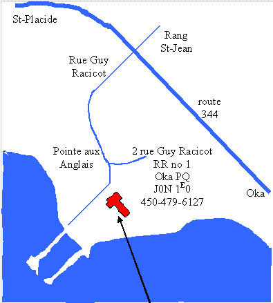 Tournez à droite (vers l'ouest) sur la 344 jusqu'à Oka et poursuivre votre route en direction de Grenville et St-Placide;